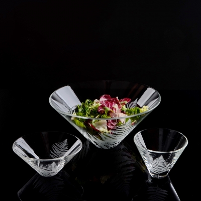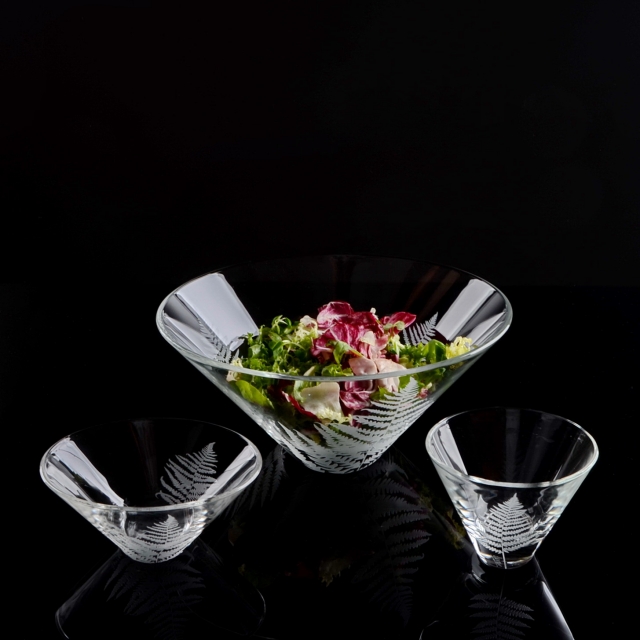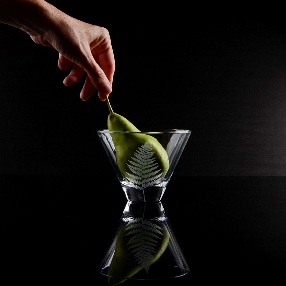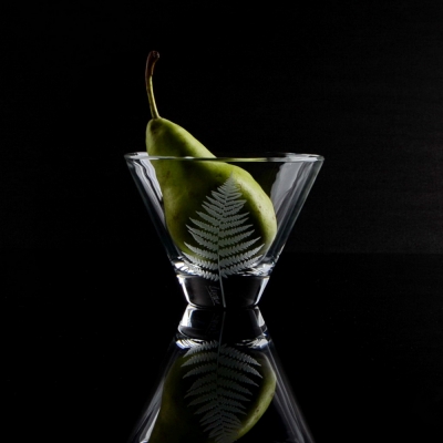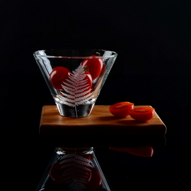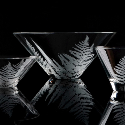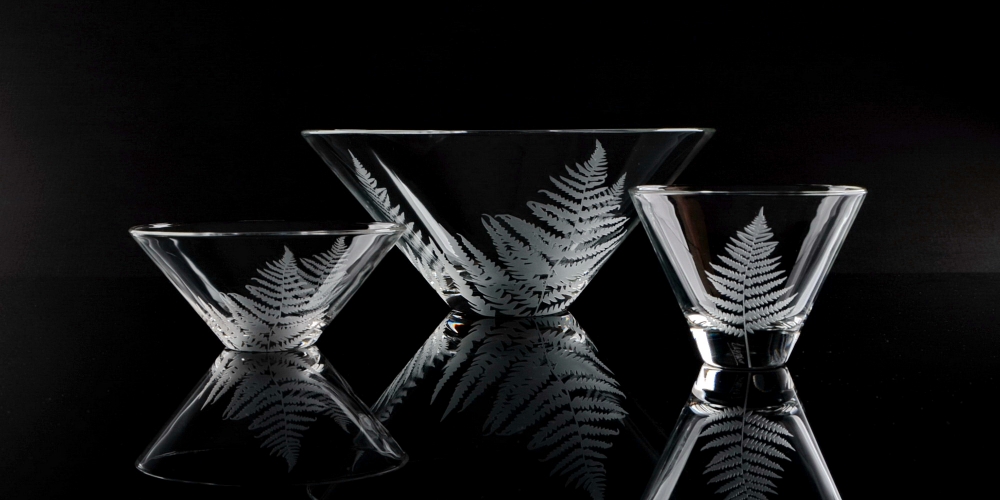Ručním pískováním jemně „kreslíme“ do skla lístek po lístku.