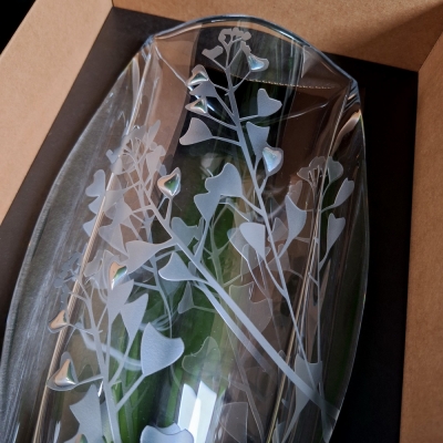 Elegantní váza z dílny našeho místního ateliéru je originálním dárkem, který spojuje hodnotu ruční práce a reprezentativní design. Ručně pískovaný motiv dodává každému kusu jedinečnost a zdůrazňuje exkluzivitu daru.