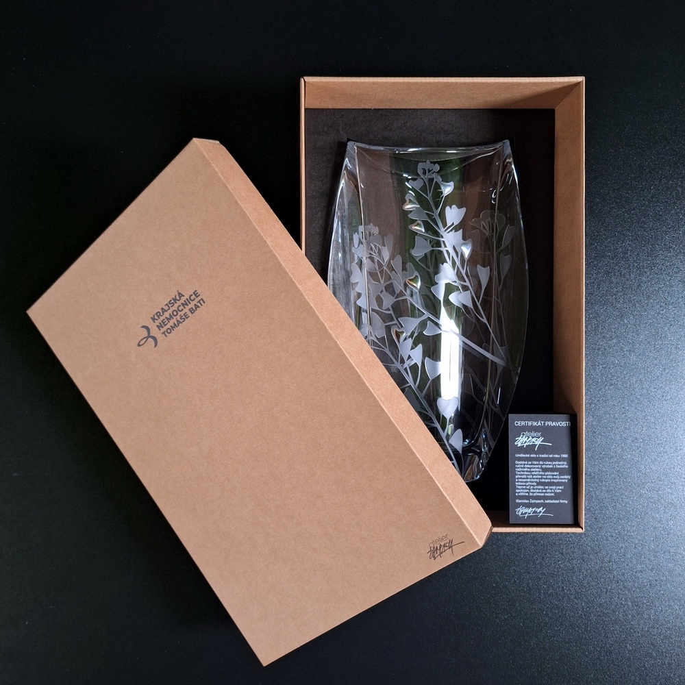 Váza je uložena v dárkové krabici opatřené logem vaší firmy, takže kromě estetického zážitku nese i jasný podpis značky. Díky tomu se stává ideálním dárkem pro VIP zákazníky, obchodní partnery či významné zaměstnance – působí hodnotně, odlišuje se od běžných firemních dárků a zanechává dlouhodobý dojem.