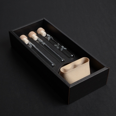 Originální "kořenky" v podobě zkumavek s jemným pískováním, které dokonale padnou do stojánku z 3D tisku. Elegantní, praktické, jedinečné.