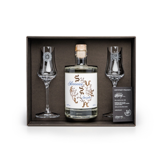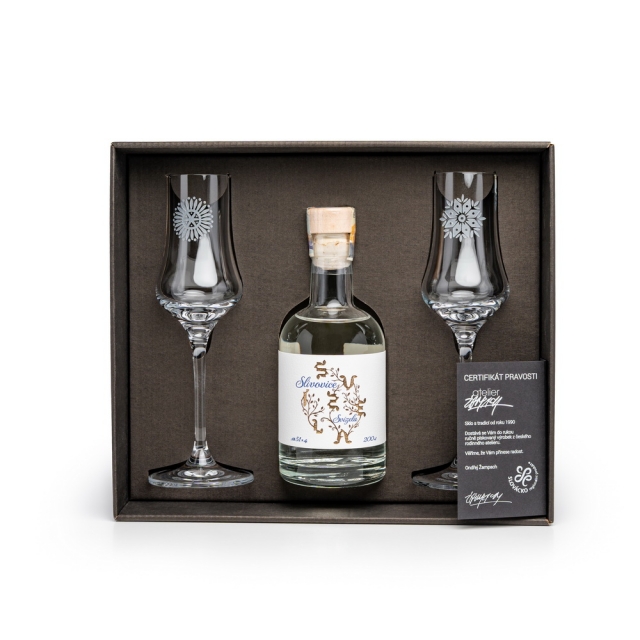 Tyto exkluzivní dárkové set potěší každého, kdo ocení kvalitní destilát a ručně zpracovaný křišťál. Obsahuje láhev pečlivě destilované slivovice Svízela s bohatou ovocnou chutí. Součástí jsou také ručně pískované grappa skleničky nebo štamprle se slováckým motivem, které umocní degustační zážitek. Celý set je elegantně zabalen v ručně skládané krabici s logem a certifikátem pravosti. Ideální jako dárek k významným příležitostem, jako firemní dar či pro potěšení blízkých.