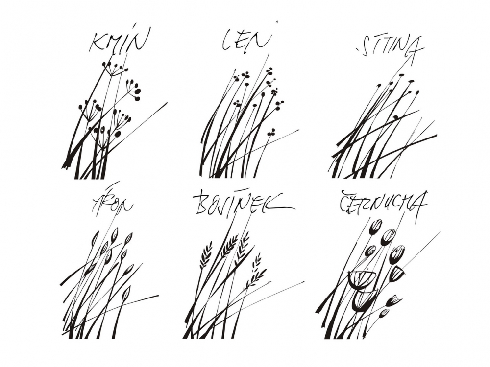 Rostliny jsou fantastickým zdrojem inspirace a stylizace je naše silná stránka. Kolekce „Traviny“ je toho vydařeným a přesvědčivým důkazem. Je to pokus, kam až může výtvarník zajít, ve snaze zjednodušit daný motiv a kde ta pomyslná hranice končí, kde by to to mohlo být už příliš zjednodušené a již neidentifikovatelné. Naše „Traviny“ totiž mají svá jména jako Bojínek, Len, Sítina, Kmín, Černucha a Áron. Sada dvou kalíšků se stejným dekorem. Jeden směrem nahoru, druhý dolů.